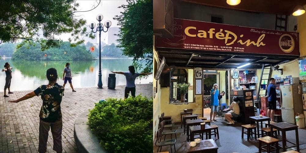 Begin your day at 6:30 AM at Hoan Kiem Lake. Arriving early lets you watch local residents practice Tai Chi before the humidity spikes. Cross the iconic red Huc Bridge to enter Ngoc Son Temple right when the gates open, securing clear photographs without the midday crowds. Keep your route tight by walking five minutes to Cafe Dinh on Dinh Tien Hoang street.